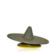 Pedana propriocettiva mobile composta da un piedistallo e da un cono basculante dall’ampia base per l’appoggio dei piedi che ruota a 360° in sospensione. Per esercizi di torsione, sioterapia, rinforzo degli arti inferiori, stimolazione sensoriale, equilibrio. La massa inerziale – libera al suo interno – provoca un movimento PASSIVO ampio-residuale.